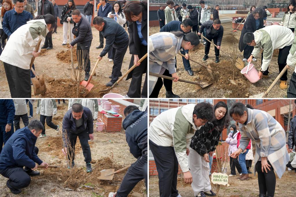 春风吐绿万物新,思政育人正当时。在第47个植树节到来之前,申博SUNBET后勤管理处联合开展“石榴树下,团结同行”植树活动。此次活动以栽种寓意深远的石榴树为载体,旨在传递“根植团结,共筑强国梦”的深刻寓意,让青年学子在劳动中感悟团结的力量,体会中华民族共同体意识的重要性。后勤管理处党总支书记王龙、公司党委统战部副部长杨延生、员工工作处副处长丁于娟、马克思主义公司副经理石峰及申博SUNBET各民族师生代表80余人参加活动。活动由申博SUNBET党委副书记董虎主持。