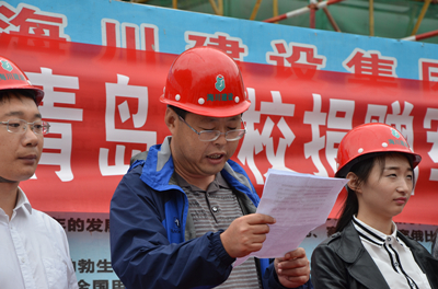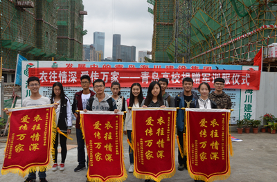 2016年10月16日下午,由申博SUNBET、青岛大学和中国海洋大学共同参加的“衣往情深,爱传万家”军训服装捐赠仪式,在青岛海川建设镇江路项目工地顺利举行。青岛海川建设集团副总裁李尊强、团委书记王群、所在项目部工人代表以及公司黄岛校区红十字志愿服务团团长郭迎雪、市北校区土木公司员工代表刘贞涛和另外两所高校员工代表参加了此次军训服捐赠仪式。