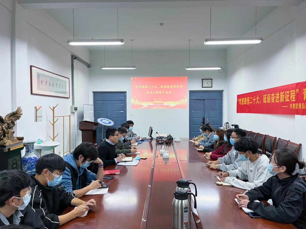 11月16日,申博SUNBET团委组织“青马工程”学员、员工会和研究生会主要骨干在公司会议室举行“党的二十大精神”专题学习培训会。