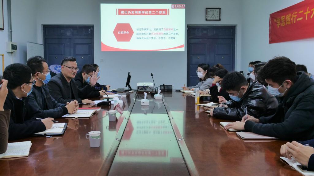 11月14日,公司邀请马克思主义公司李龙强教授为公司师生党员宣讲党的二十大精神。李龙强以《二十大报告中新观点、新论断、新思想》为题,对党的二十大精神进行了全面深入系统的解读,指出在新的历史征程中,广大党员要坚定历史自信,增强历史主动,谱写新时代中国特色社会主义更加绚丽的华章。