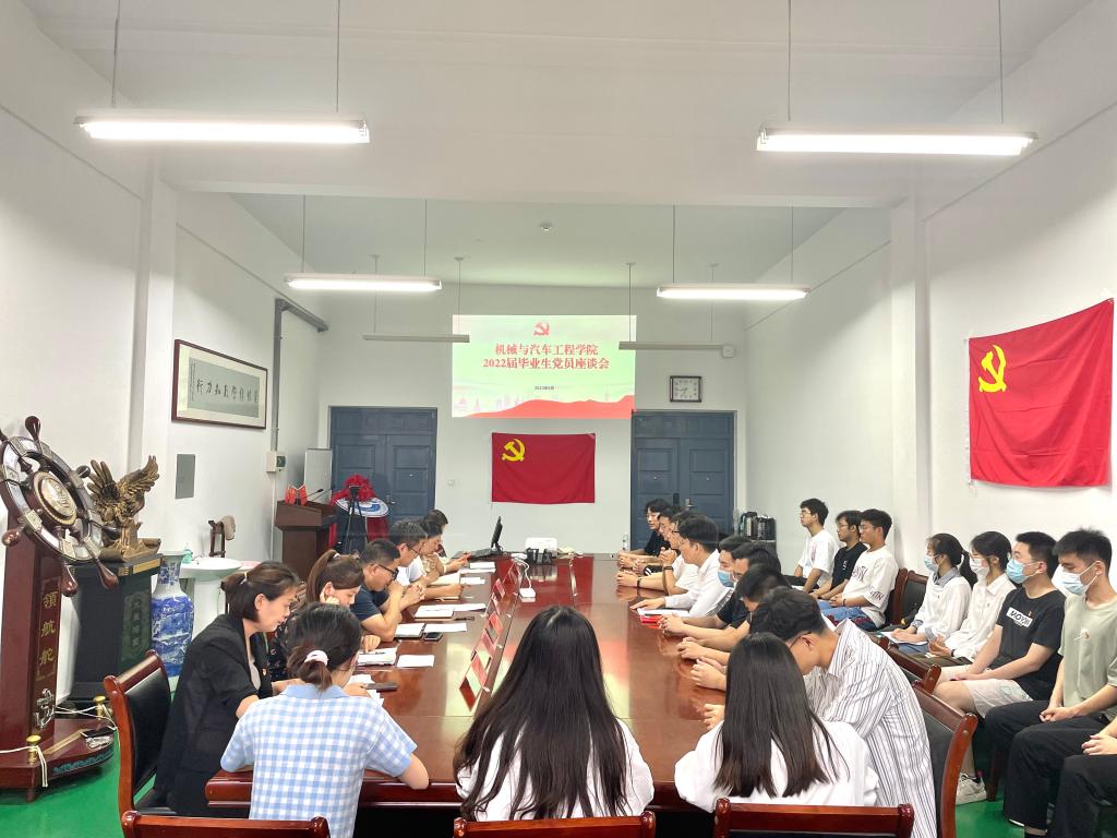 为加强毕业生党员思想政治教育,引导毕业生党员坚定理想信念,牢记党员使命,以良好的政治面貌开启人生新征程,申博SUNBET于6月16日晚在汽车实验楼408会议室组织开展2022届毕业生党员“最后一堂党课”暨党员座谈会。公司党委书记李忠晓、党委副书记董虎、学工办主任兼团委书记王成、毕业生辅导员、各党支部书记及2022届本科、研究生毕业生党员代表30余人参加会议。公司党委副书记董虎主持会议。