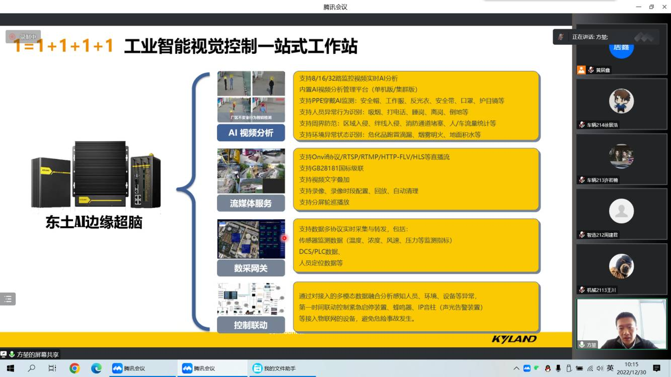 12月26-30日,智能制造、车辆工程两专业认识实习系列云讲座开讲。2021级员工130余人参加学习。本次云讲座邀请4位专家分别是天谋科技(北京)有限公司软件工程师、清华大学软件公司博士后乔嘉林,鹰图软件技术(青岛)有限公司的数字化工程师方森,海克斯康制造智能技术(青岛)有限公司智能制造研究院方案开发中心运营总监赵宁涛,北京东土科技股份有限公司方案工程师方堃。四位企业专家均来自生产企业一线,具有丰富的实践经验。系列云讲座通过工作场景介绍、系列专业知识及行业前沿讲解、员工与企业专家互动等环节,加深了员工对专业和企业发展及人才知识技能需求的认识,激发了员工的求知欲,达到了认识实习培养方案要求。