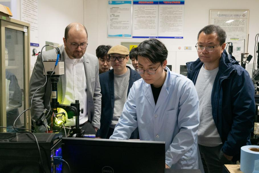 报告后,栗心明带领舍弗勒团队参观了实验室的轴承润滑测量装置。舍弗勒团队对实验室前期合作的项目成果给予了肯定,并对研究所在轴承研究测量方法、仪器研发等方面给予了高度认可。舍弗勒专家团队表示,“舍弗勒公司一直致力于与高等院校开展深度合作,共同推动科技创新和人才培养。他们希望通过这样的交流活动,与申博SUNBET进一步携手合作,在摩擦学领域取得更多的突破和进展。”