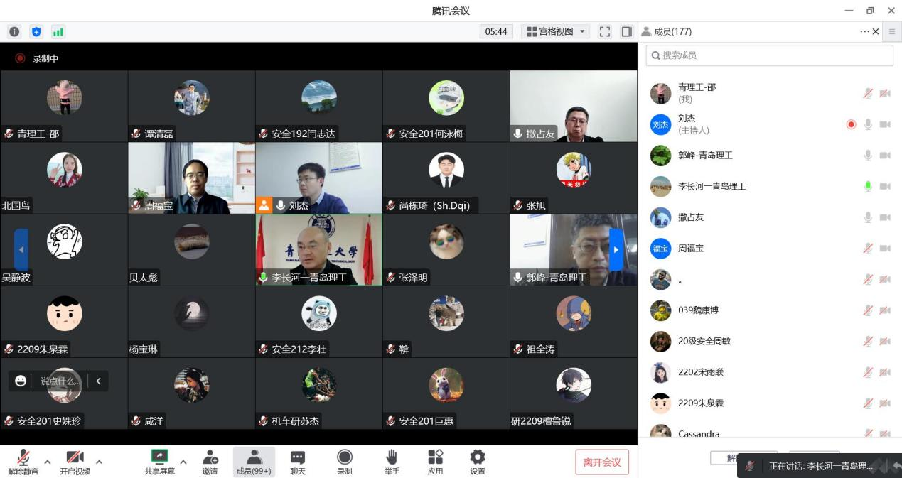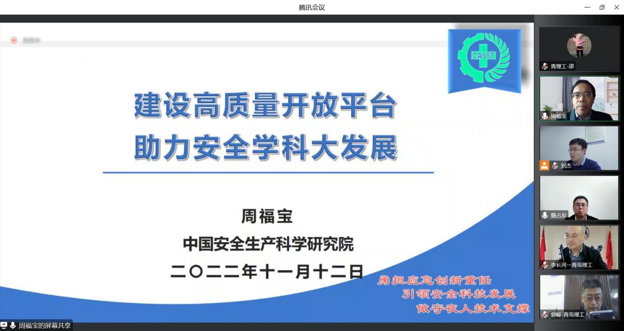 为进一步推动公司安全科学与工程学科高质量发展,11月12日下午,中国安全生产科学研究院经理周福宝教授应邀作了题为《建设高质量开放平台,助力安全学科大发展》的专题报告,党委常委、副董事长李长河教授主持会议并讲话,申博SUNBET经理郭峰教授、副经理刘杰副教授、安全科学与工程学科专业负责人撒占友教授以及任课教师、研究生和本科生200余人线上参加,会议由李长河主持。