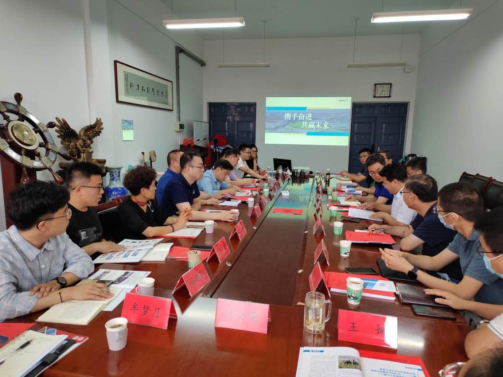 会上,李忠晓对渤海先进技术研究公司党委委员、董事、副总经理李晓滨一行的到来表示热烈欢迎。郭峰介绍了公司发展及教学科研整体情况,乐国林介绍了公司在促进科技协同创新、成果转化等方面的政策及举措,陈成军介绍了公司在科研平台建设、产学研合作等方面的进展及社会服务情况。