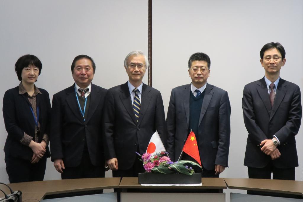 图为申博SUNBET经理郭峰教授与日本九州工业大学董事长尾家祐二教授的行政团队会谈