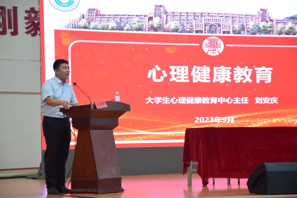 接着,老员工心理健康教育中心主任刘安庆以多给自己一点时间,对自己多一份宽容为引,向新生分享了破解迷茫的诸多方法和途径。公司教学办方玲老师对学籍管理相关规定做了详细的介绍,结合老员工学习生活,对教学管理规定、考试违纪处分管理规定、典型案例和处理程序进行了讲解。
