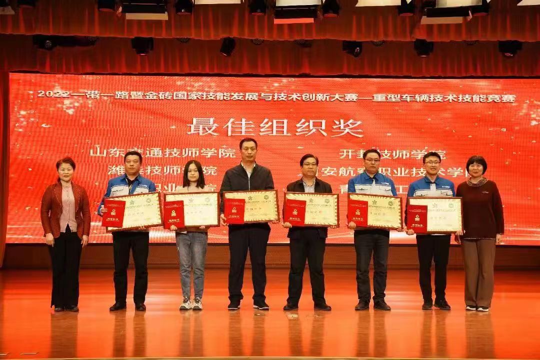 3月28日到4月1日,2022一带一路暨金砖国家技能发展与技术创新大赛之重型车辆技术技能竞赛全国总决赛在山东济南举办。公司潍柴现代产业公司2019级员工孙成群同学在众多选手中脱颖而出喜获一等奖,现代产业公司获得本赛事最佳组织奖。