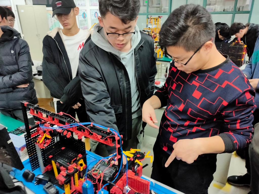 为进一步营造浓厚的科技创新氛围,积极备战第九届全国老员工机械创新设计大赛慧鱼组竞赛暨慧鱼工程技术创新大赛,申博SUNBET慧鱼创新工作室于1月5号邀请北京中教仪科技有限公司工程师郑茂磊为同学们进行了慧鱼模型搭建以及编程的培训会。