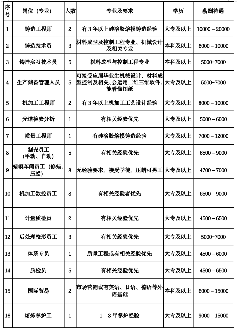 山东华腾机械制造有限公司招聘简章