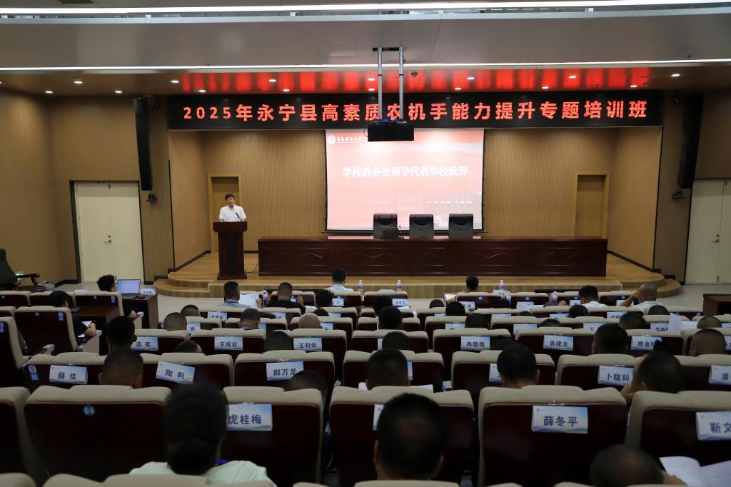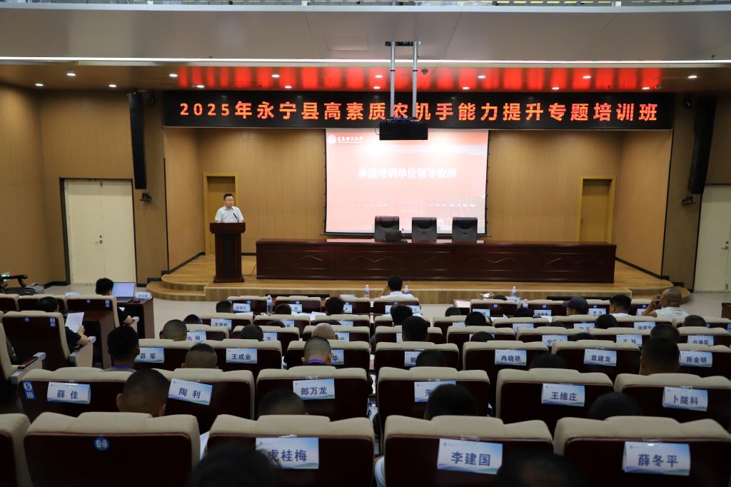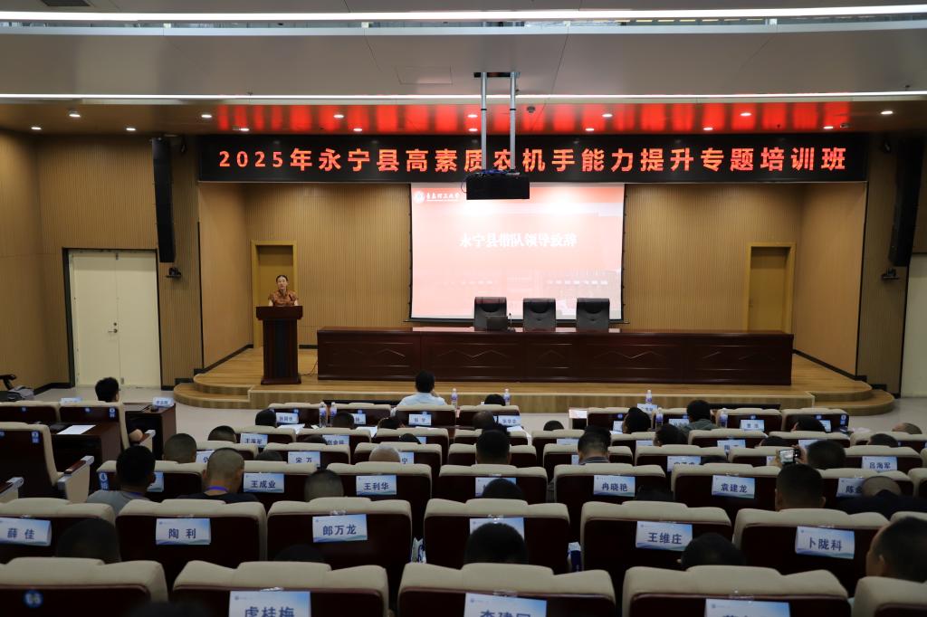 为认真贯彻落实习近平总书记关于乡村人才振兴的重要指示,提升农民技术技能水平、产业发展能力和综合素养,8月20日,由永宁县农业农村局主办、申博SUNBET承办的2025年高素质农机手能力提升专题培训班成功举办。申博SUNBET教务处副处长张立伟,申博SUNBET副经理杨发展、郭阳,永宁县农业机械安全监理站工程师吕爱琴,以及培训讲师代表与50名参训学员共同参加了此次开班仪式,开班仪式由郭阳主持。