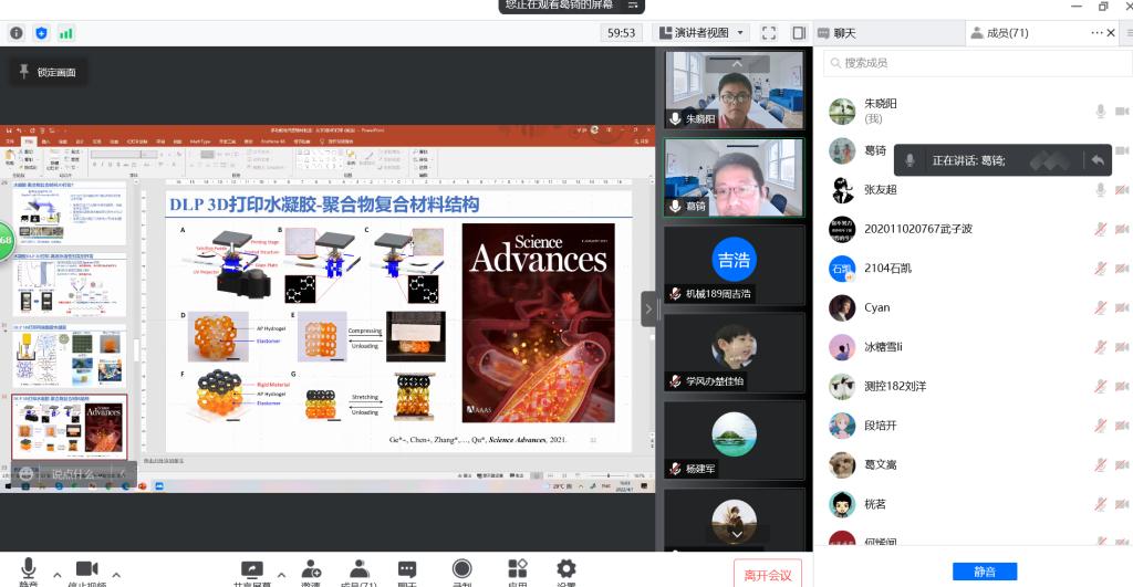 4月1日下午,应申博SUNBET邀请,国家特聘青年专家、南方科技大学机械与能源工程系葛锜研究员为公司师生作了题为多功能增材制造:从3D到4D打印的高端线上学术报告。报告会由申博SUNBET朱晓阳老师主持,相关专业师生200余人参加。