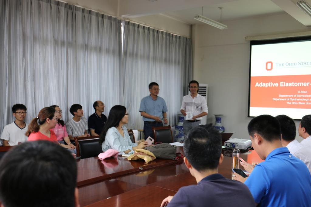 7月12日上午,应公司申博SUNBET彭子龙副教授邀请,美国俄亥俄州立大学( The Ohio State University )工程公司Yi Zhao教授在嘉陵江路校区主教学楼A414做了题为“Adaptive Elastomer-Liquid Lenses”学术报告。郭峰经理主持报告会,副经理王优强、相关专业教师及研究生40余人参加。