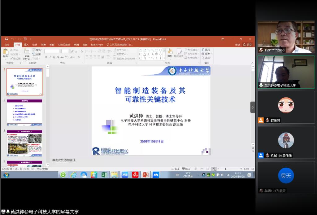 10月28日,申博SUNBET第35期“匠心机车讲坛”开讲,本期讲坛特邀电子科技大学系统可靠性与安全性研究中心主任黄洪钟教授通过线上腾讯会议的方式做了题为“智能制造装备及其可靠性关键技术”的学术报告,申博SUNBET学术委员会主任林天然教授主持报告会, 200余名教师、员工通过线上方式聆听报告。